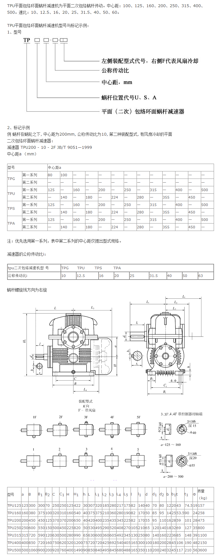 TPU平面包络环面蜗杆减速机是一种新兴的传动装置,其承载能力大,传动效率高,结构紧凑、合理。此减速机是按照中华人民共和国机械行业标准JB/T9051——1999《平面包络环面蜗杆减速机》设计制造。