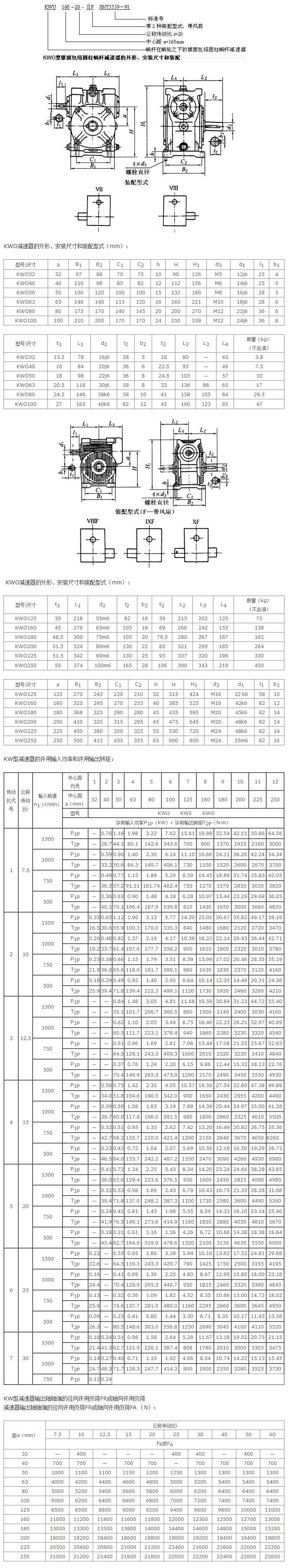 工作条件:蜗杆输入转速不超过1500r/min;工作环境温度-40~~40℃,当工作环境温度低于0℃时,启动前润滑油必须加热到0℃以上,或采用低凝固点的润滑油。